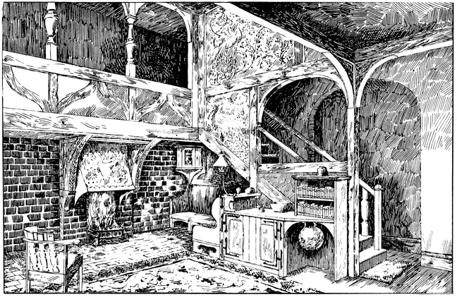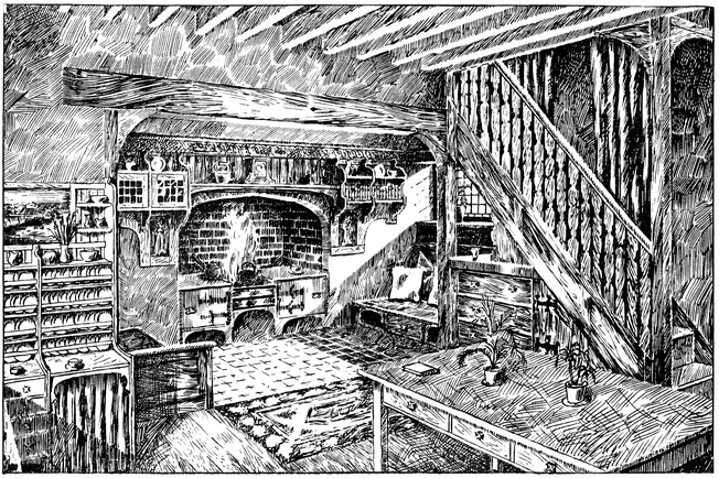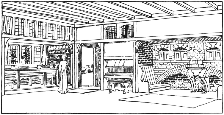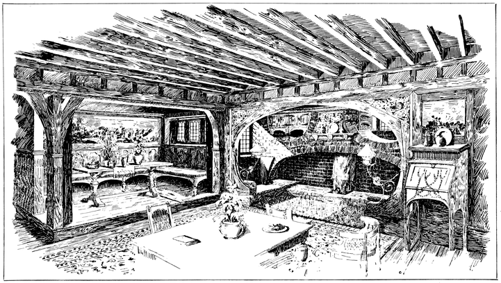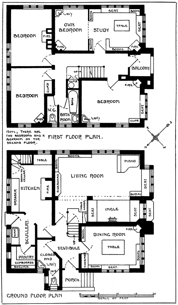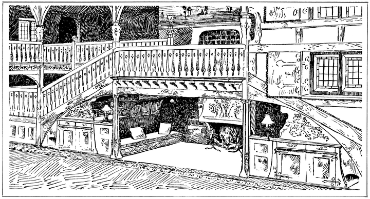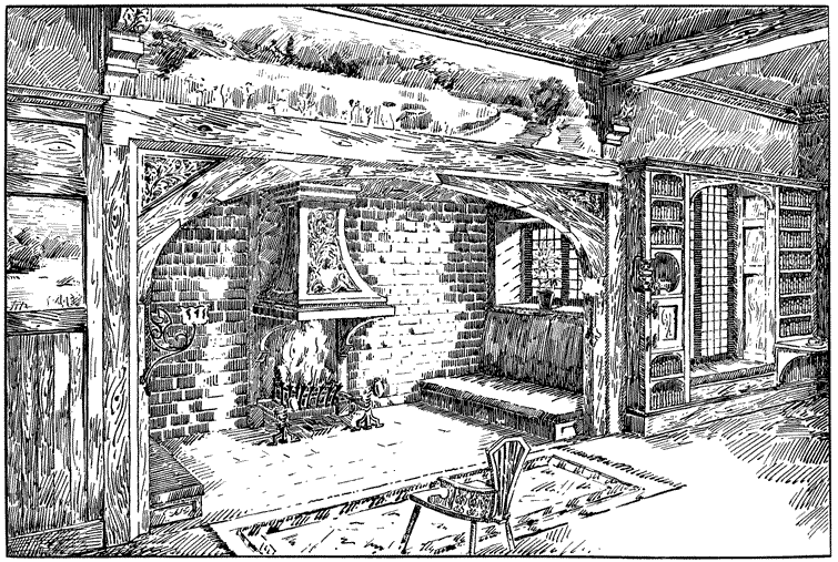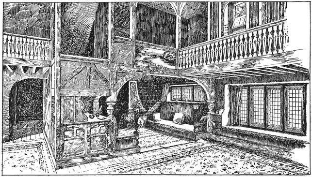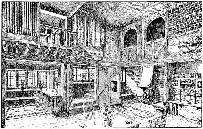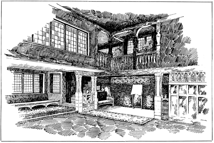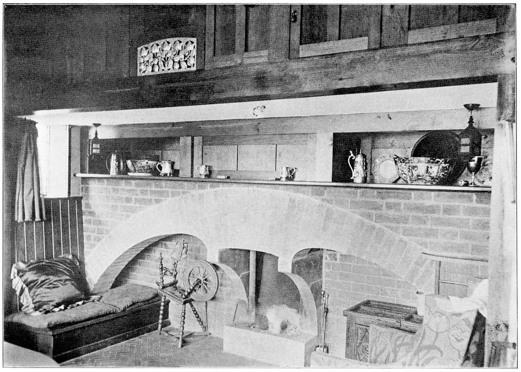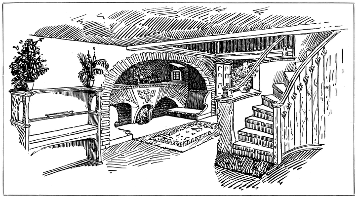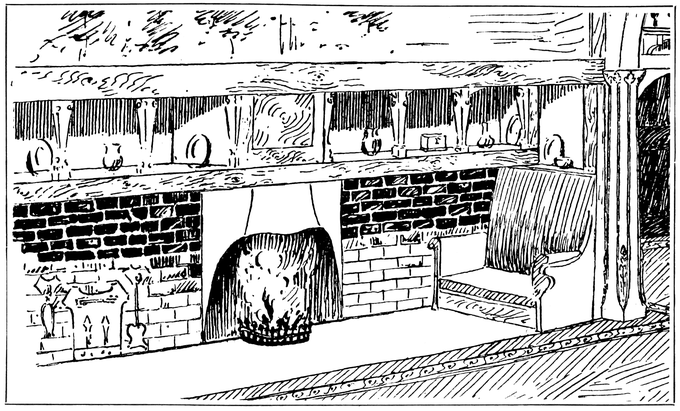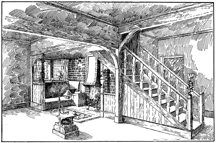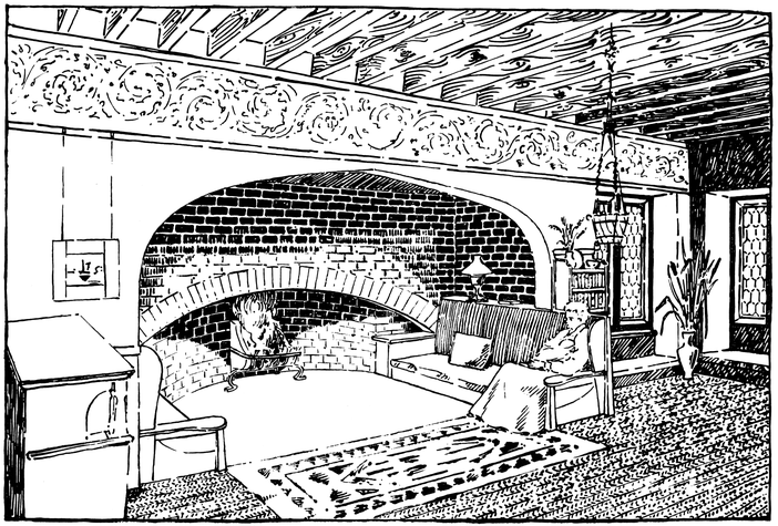 Any house is cold all through the winter months unless a fire of some kind is kept burning in the hall; many people, therefore, find it necessary to have a stove or heating apparatus; and, in most houses, it is thought necessary to have two other5 fires burning, one in the living room, and one in some other room that there may be somewhere to show visitors. Now when the hall is also a sitting room, with a fire in it, we get, for the trouble and expense of two fires, all the advantages ordinarily attaching to three.