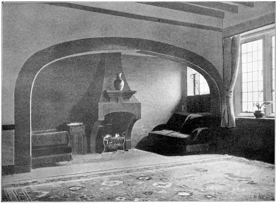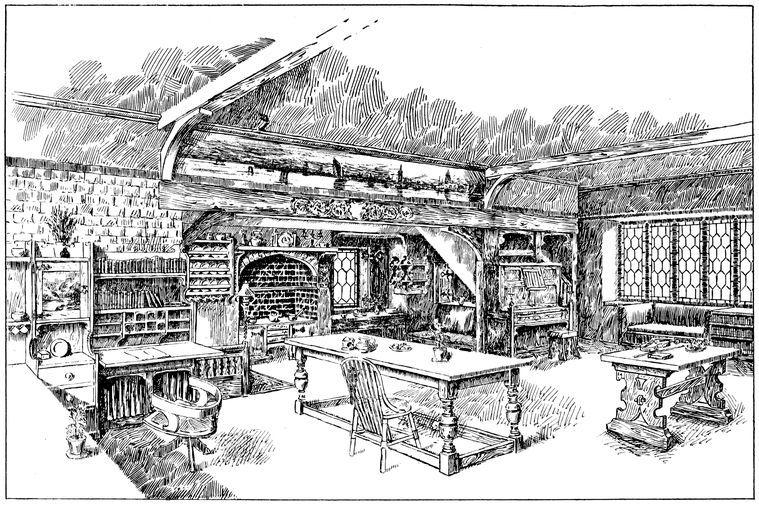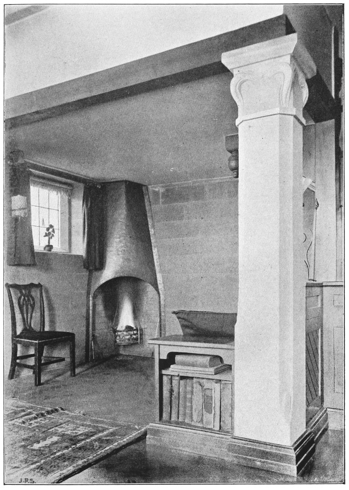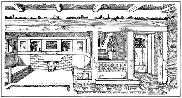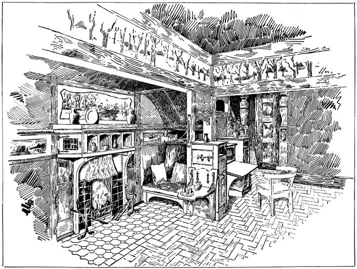 Now many people have a feeling that there is a certain cosiness in a small room entirely unattainable in a large one; this is a mistake altogether; quite the reverse has been my experience, which is that such a sense of cosiness as can be got in the recesses of a large room, can never be attained in a small one, be it no larger than a sentry box. But if your big room is to be comfortable it must have4 recesses. There is a great charm in a room broken up in plan, where that slight feeling of mystery is given to it which arises when you cannot see the whole room from any one point in which you are likely to sit; when there is always something round the corner.