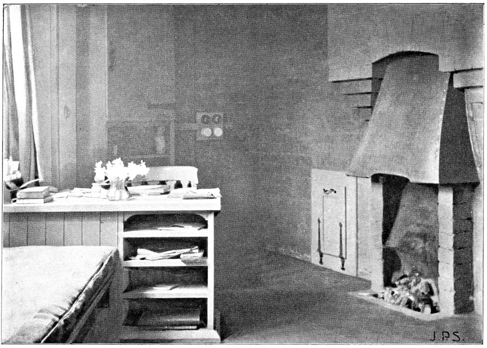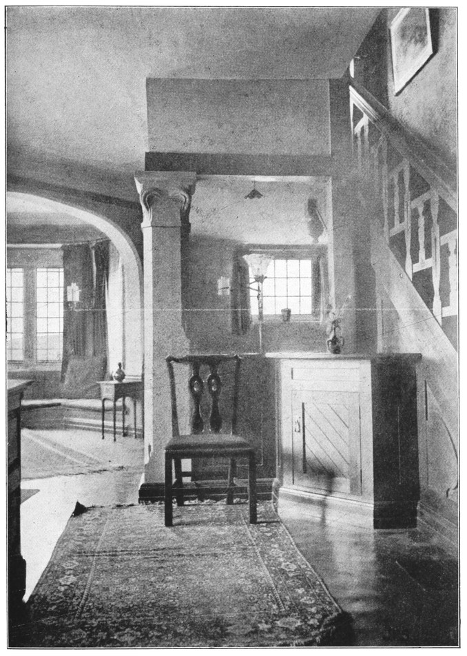 When the architect leaves the house, the subservience to convention is not over. After him follow the decorator and the furnisher, who try to overcome the lifelessness and vapidity by covering all surfaces with fugitive decorations and incongruous patterns, and filling the rooms with flimsyiv stereotyped furniture and nick-nacks. To these the mistress of the house will be incessantly adding, from an instinctive feeling of the incompleteness and unsatisfactoriness of the whole. Incidentally we see here one reason why the influence of the architect should not stop at the completion of the four walls, but should extend to the last detail of the furnished house. When his responsibility ceases with the erection of the shell, it is natural that he should look very little beyond this. There is no inducement for him to work out any definite scheme for a finished room, for he knows that if he had any aim the decorator and furnisher would certainly miss it and would fail to complete his creation. If, when designing a house, the architect were bearing in mind the effect each room would have when finished and furnished, his conceptions would be influenced from the very beginning, and his attitude towards the work would tend to undergo an entire change. At present he but too readily accepts the popular idea of art as a thing quite apart from life, a sort of trimming to be added if funds allow.