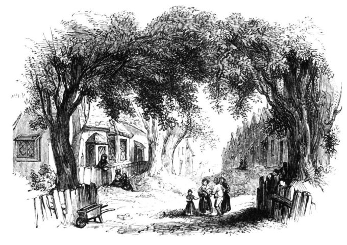 thickly-clustered cottages and gardens. It is a large quadrangular