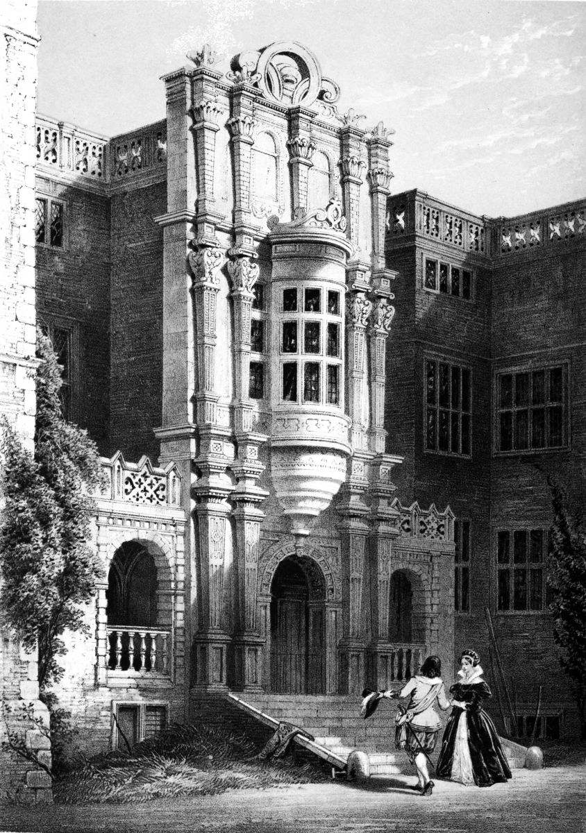 The circumstances connected with the building of Sawston Hall are akin to Romance. The popular tradition is, that it was erected at the cost of Queen Mary, who, when a fugitive from her enemies, after the death of Edward VI., found shelter in the ancient house of the Huddlestons. Her pursuers reached the Hall within a very short time after she had quitted it; and in their rage of disappointment at losing their prey, burnt to the ground the mansion that had harboured her. She is said to have witnessed the conflagration from a distant hill; and to have exclaimed, “Let the house burn; I will build Huddleston a better.”