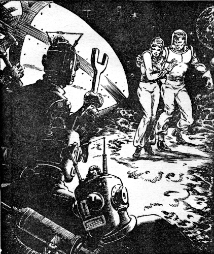 Once in his own quarters, Henry Ohm began dragging on his oxygen suit. He could still see the girl through the glass partitions of the igloo. She had dropped into a chair, lit a cigarette.