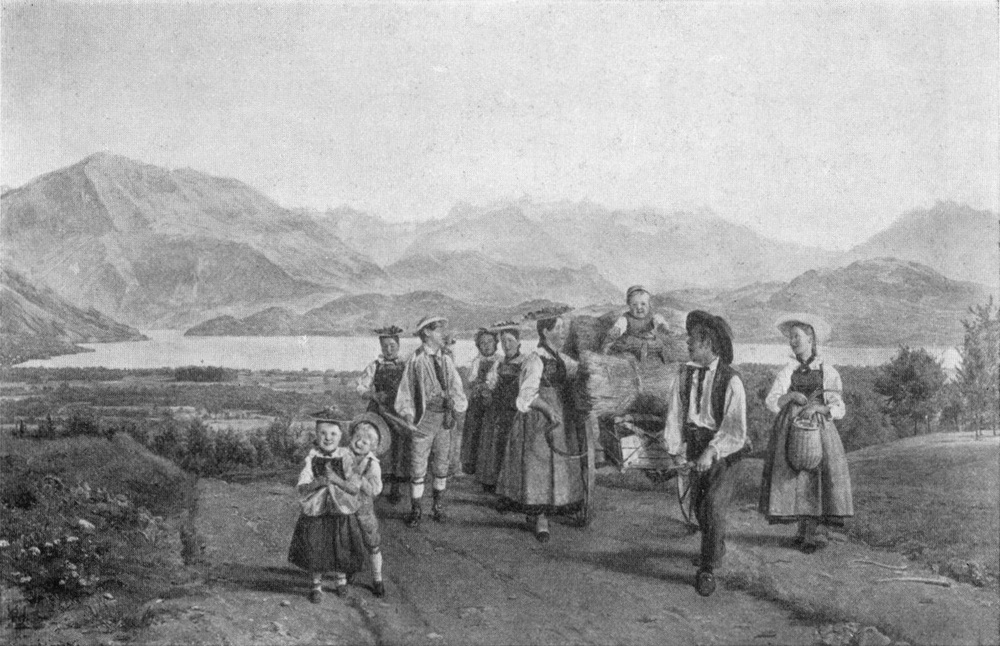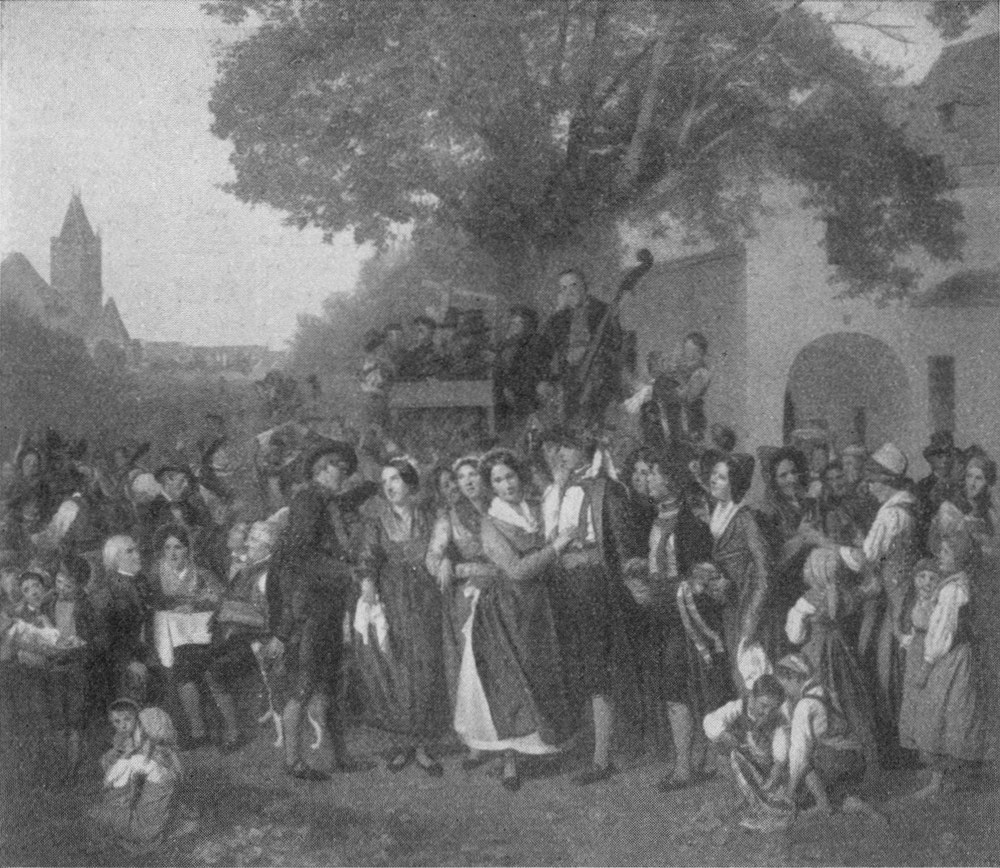 Gerne malte er den Frühling und den jungen Sommer. Das zarte, fast noch gelbliche Grün hatte es ihm angetan. Schüchtern belaubte Äste und Zweige heben sich wie Silhouetten von dem wahrhaft himmlisch blauen Himmel ab. Wie sind seine Praterlandschaften voll seliger Frühlingspracht! Man glaubt irgendwo eine Lerche tirillieren zu hören. Ein Übermaß brünstigen Naturgefühls ist über diese Landschaften ausgeschüttet. So kann diese Praterauen nur empfunden und gemalt haben, wer sie an einem Maitag mit einem blitzsauberen, lieben, braunäugigen Wienermädel am Arm durchwandert hat. Aber auch nachempfinden kann das dem teuerwerten Meister nur einer, der gleich ihm, im Prater einmal unter Palmen gewandelt. Eine rechtschaffene Frühlingsstaffage belebt seine Frühlingsbilder: Kinder oder junge Liebesleut! In aller Augen blitzt Heiterkeit, sie sind entfernt von Sorge und freuen sich am wärmenden Sonnenlicht. Das ist die frohe, junge Zeit, weiter hinauszuschweifen in die Umgebung Wiens, in den Wienerwald und zum Kahlenberg, dorthin, wo aus dem smaragdenen Moos die ersten Veilchen brechen und Schneeglöckchen sprießen, mit lautem Jubel begrüßt von den jugendlichen Pflückerinnen. Und wo – nun es schon völlig Frühling geworden – die Maiglöckchen ihren rassigen Blütenduft verströmen. Wie ein frisches Natur[S. 8]parfüm aus Frühlingsblumen weht einem die Stimmung entgegen aus Waldmüllers Frühlingsbildern, die in seinem reichen Werk die schönsten sind. Diese Frühlingsstimmung wird zuweilen auch lebendig auf seinen Figurenbildern, z. B. wenn er das prachtvoll gruppierte Familienbild des Herrn von Eltz malt und dabei die ganze Schar der ihm lieben Menschen in die ihm kaum minder liebe Salzkammergut-Landschaft stellt. Wie vertraut sind ihm diese Herrlichkeiten: St. Wolfgang mit seinen malerischen Straßen und Winkeln, von dem ferngrüßenden Schafberg überragt, Ischl und sein See und die Hütteneckalm, zu der wie ein Schwarm bunter Schmetterlinge eine Schar draller und ranker Mädel emporgestiegen ist, um in seliger Rast hinabzusehen auf das weite Frühlingsland. Der majestätische Dachstein, der Leopoldsberg und Klosterneuburg und all die Herrlichkeiten, die sie zur guten Frühlingszeit darbieten, mitsamt den Menschen, lustigen, bunten Weiblein zumal, das alles ruhte – wie Goethe seinen Werther sagen läßt – „in seiner Seele wie die Gestalt einer Geliebten.“ Werther! – das ists: unwillkürlich greift man, da man den Zusammenklang verwandter Naturen mit „innerem Ohr“ vernahm, zu Goethes brünstigem Bekenntnisbuch, schlägt auf und liest dies: „Eine wunderbare Heiterkeit hat meine ganze Seele eingenommen, gleich den süßen Frühlingsmorgen, die ich mit ganzem Herzen genieße. Ich bin allein und freue mich meines Lebens in dieser Gegend, die für solche Seelen geschaffen ist, wie die meine....“ und was weiter geschrieben steht, heißen Naturgefühls voll, unter dem fingierten Tagebucheintrag vom 10. Mai. Aus der gleichen Liebe heraus, aus der Werther tatenlos phantasiert, schafft Waldmüller. Die Liebe, weitausgreifend, allumschlingend, ist in beiden. Bei Waldmüller die höchste Spezies dieser Liebe: die wirkende, über sich selber hinauswachsende, in Werken sich bekundende. Das ist die Bedeutung von Waldmüllers Werk: weil es aus einer heißen Liebe heraus entstanden ist, darum ist es heute noch fähig, heiße Liebe zu erwecken.