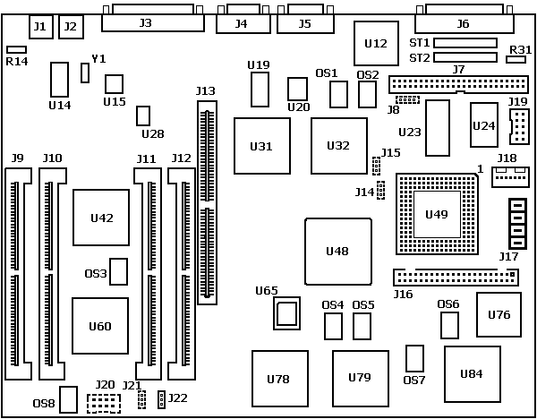 U76 This can be either the N82077AA (used on the 90 and 95) or it can be the National Semiconductor PC8477AV-2 floppy controller. A few systems have the 82077SL controller, PLUS U65 System EPROM 39G3299 is soldered directly to the planar (no PLCC socket needed) From Peter
