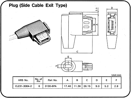 KB Plug Identity The P7x right angle connector is HRS # CL231-3004-2, part # 3130A-6PA Go to the Hirose Electric web page and look at their catalog HERE T. Sunagawa sez: