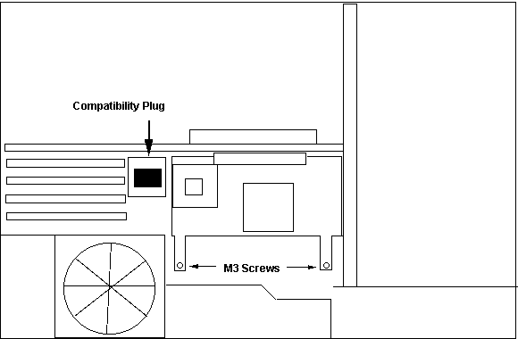 Remove 386/387. Install compatibility plug. Remove both M3 screws. NOTE: