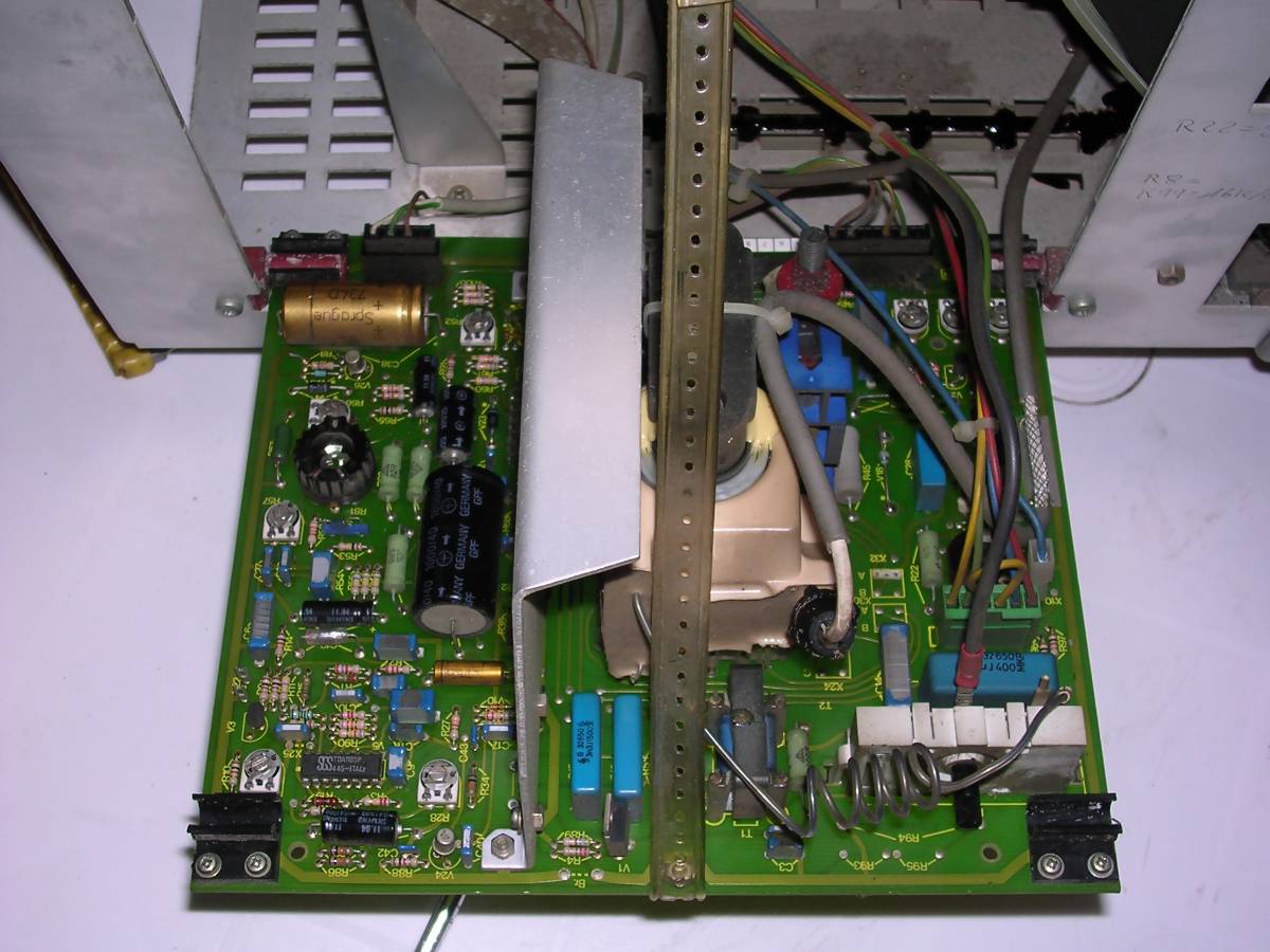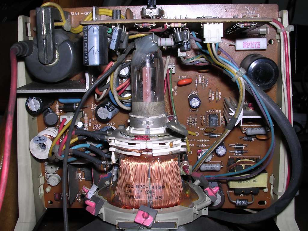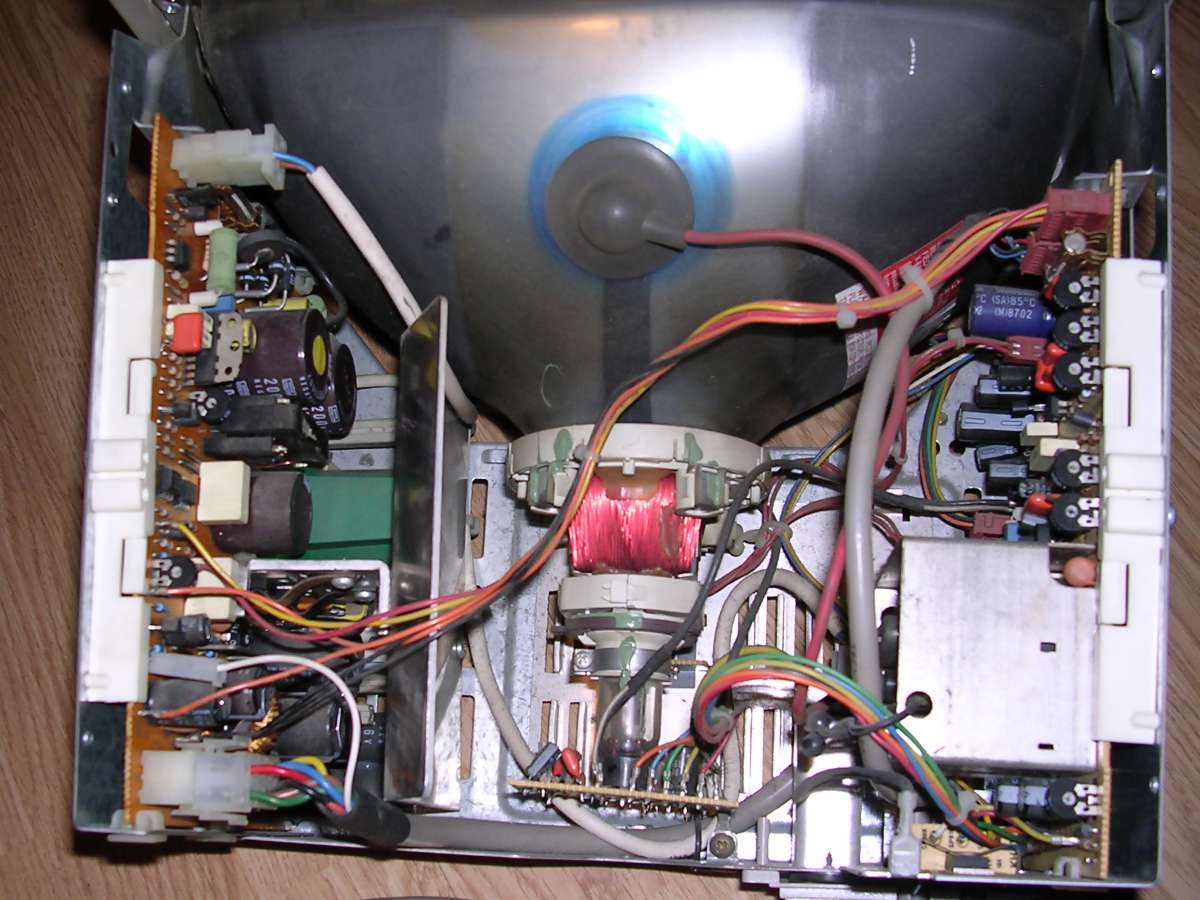 What's interesting this device is extremely tolerant to input signals - can display many picture types without problems, I connected it into different MDA, CGA, Hercules and EGA variants (by converter) and it always shown something. Usually the first failure is the input filter capacitor, big red one.