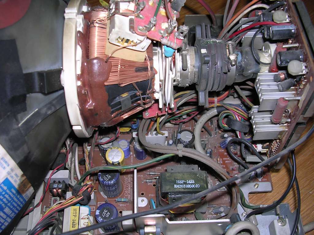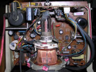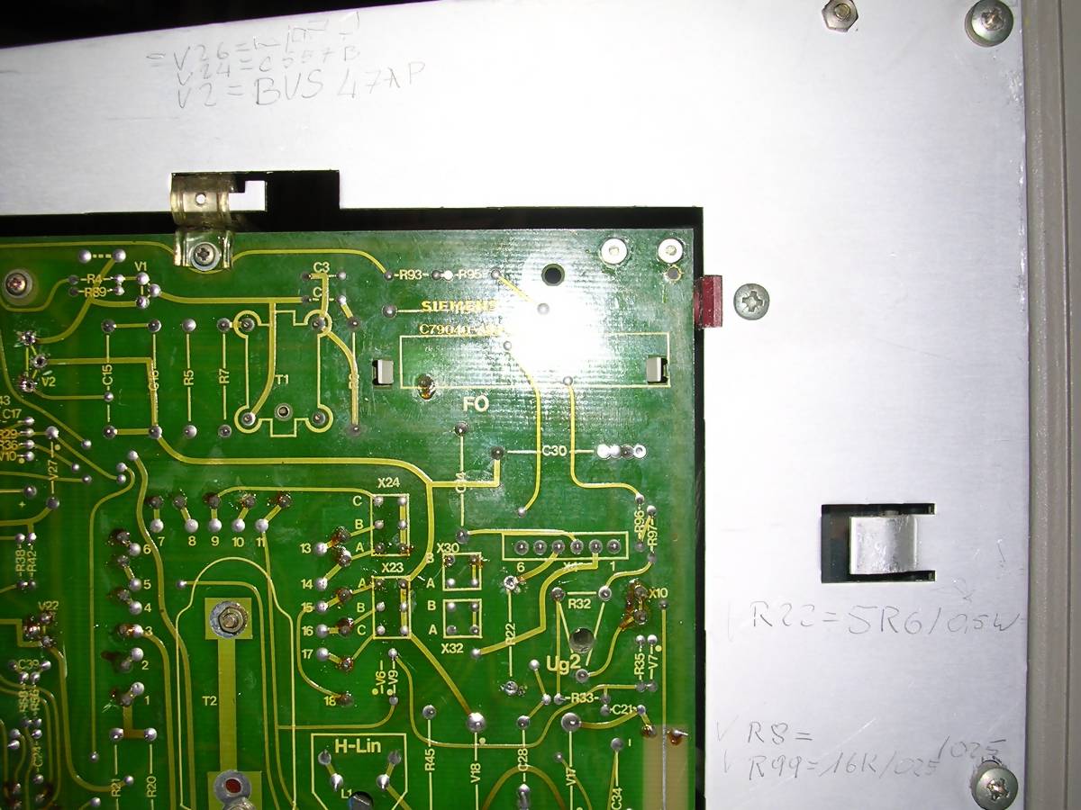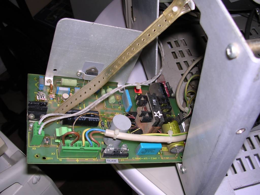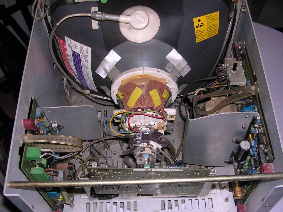 What's interesting this device is extremely tolerant to input signals - can display many picture types without problems, I connected it into different MDA, CGA, Hercules and EGA variants (by converter) and it always shown something. Usually the first failure is the input filter capacitor, big red one.