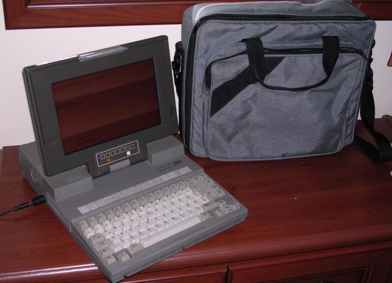 A 286 portable similar to Toshiba 3200, but with backlit LCD instead of plasma and with battery pack, allowing it to work without power source for 1-1,5 hours (charging time: 3 hours when computer is off, 10 hours when on). It has ISA slots, but battery pack forced power supply to be external. It has 3.5" 1.44MB floppy disk drive and 40MB Conner hard disk. Graphics is also cheaper - It's CGA with Hercules compatibility, but LCD is not Hercules-compatible so only part of picture is displayed (Alt-left and right arrows scroll it).
