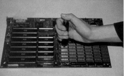Assuming that the motherboard fits, take it back out of the case. The motherboard runs under a wide variety of parameters. It must know about your computer's memory (both speed and amount), the monitor, the drives, the math coprocessor if there is one, and any other options specific to your system. By setting the DIP (Dual Inline Package) switches and pin jumpers, you can tailor the motherboard to your particular configuration. If you change a DIP switch, never use a pencil point.