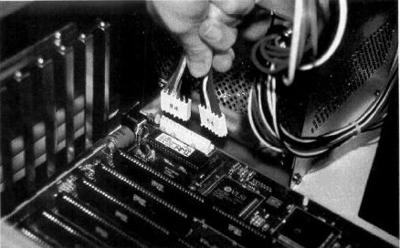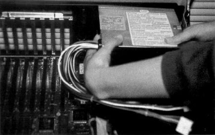 Your next step is installing the power supply. Most power supplies slide into position and fasten to the rear of your case. They have two, six-wire cables that attach in tandem to the motherboard. Make sure that you connect these correctly; if they're wrong, your motherboard will fry the first time you turn on your PC.