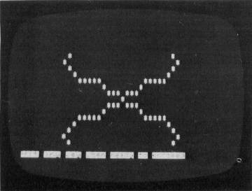 Patterns start at the center of the screen. This point is the origin for the X- and Y-axes. A symbol, initially a "*", will appear at this point. To print the next point, use the numeric key-pad in the conventional way. "5" is the center. The other non-zero digits are used to enter the direction for the next point to be printed. For example, entering "9" results in the next point printed being in a north-east direction from the previous point.