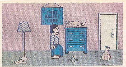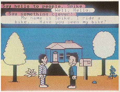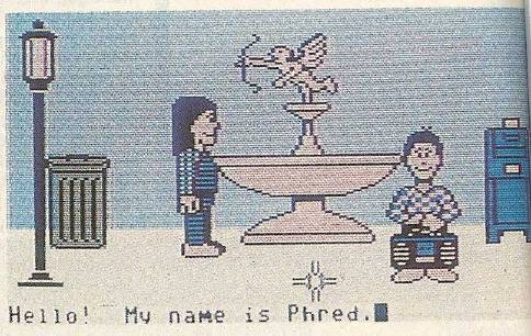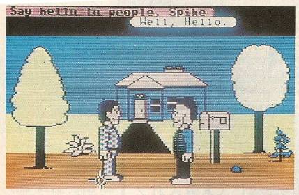 Communication with other Avatars can be accomplished by letter, by phone, or just by talking directly to them, if you're in the same room. It's similar to the three ways in which you normally communicate with another user on Q-Link: E-Mail, online messages, or joining a conference in the People Connection area. Unlike People Connection—where your words appear next to your name after you've typed them and pressed RETURN—Habitat shows your words in a little bubble above your character's head, as in a cartoon.