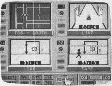 Once you've received your instructions, the main screen comes up. You see four small monitor screens, each with its own channel selector. At the bottom of the screen is a control panel with several buttons, which you control with mouse or joystick (depending on version). Apart from a bit of typing at critical moments, that's all there is to operating the game. A simple interface, but with a wealth of options.