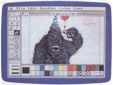 Fortunately, someone at Activision remembers older and simpler times and has brought these comic postcards back (but not the penny stamp) in a new program called Postcards. The program consists of a library of line-art images, a drawing program for customizing or enhancing the artwork, and a text processor for captions. Postcards allows you to print out a part of the past on a dot-matrix printer, paste it on postcard stock, and mail it to someone who will either appreciate the nostalgia or be buffaloed into thinking you've invented a new art form.