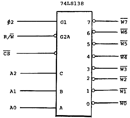 From the data sheet for the 74LS138, we see that the delay from the high true enable input (G1) to any output is a maximum of 26 ns (typically 17 ns). This is quite acceptable, provided that we are not using a delayed ø2.