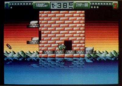 All in all, Tower Toppler is a primer on just what makes a great arcade program. As I mentioned earlier, you've got the cute creature, you've got danger, you've got challenge. Just keep in mind that once you boot this one up, it's unlikely that you do anything else until it is conquered. Consider yourself warned.