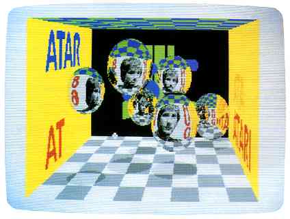 TRACER.PRG allows you to create your own scenes like Figure 2. You can have up to 20 mirrored spheres of different sizes anywhere in the scene, and you define the colors and the images used on the walls of the "room." You also determine the position of the viewpoint so you can create different perspective effects. It will create beautiful three-dimensional ray-traced images in the low-resolution, 16 color graphics mode. It will not run in monochrome mode.
