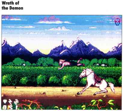 Wrath of the Demon combines state-of-the-art, multilevel, parallax scrolling with spectacular graphics, animation and playability in a danger-filled quest to rid the kingdom of an evil demon and his minions, rescue the princess, and restore honor to your king.