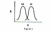 First, I'll briefly describe the hi-rel mod and why it works. The 410 and 1010 cassette recorders use two parallel filter circuits that convert the signal recorded on a program cassette into a form the Atari computer can understand. Think of these two filters as a couple of bellshaped curves, like those shown in Figure 1. Any signal that falls in the band (window) of the low filter is converted into a logical "zero"; a signal that falls into the window of the high filter is converted into a logical "one." Any signal that falls outside the windows of both filters is ignored.