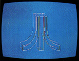 Line 100 begins the math, computing the X,Y,Z position for yaw. Lines 110-120 do the same for pitch and roll. Lines 130 and 140 PLOT or DRAWTO, depending upon FLAG=0 or FLAG= 1. These lines also compute the X,Y equivalents of X,Y,Z by multiplying by the sine and cosine of 45 °, C, or 0.707. HC and VC are the horizontal center and vertical center of the screen, 160 and 90. (This allows setting the object's X,Y,Z coordinates with 0,0,0 at the center, which makes life simpler.)