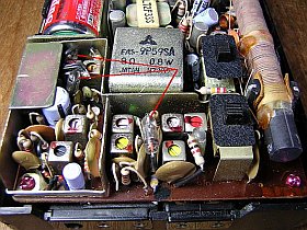 抵抗類は殆ど1/4W(実は1/2W?)型で、あまり小型化などは考慮されていないようです。その中で、一際目立つのがOA70というガラス封入型のダイオード。(はて?OA70ってこんなに太かったかなぁ?)