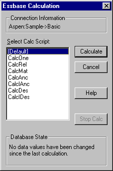 When you select Essbase > Calculation, Essbase displays the Essbase Calculation dialog box.