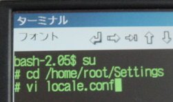 - you should now have a prompt of "bash-2.05$" - type "su" to enter superuser mode - type "cd /home/root/Settings" - type "vi locale.conf" |