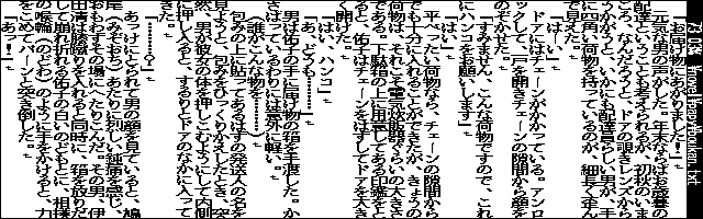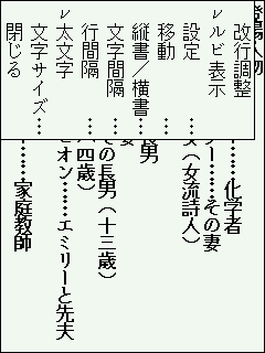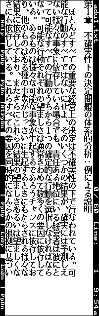 残念な点としては、表示フォントが一種類だけだということです。縦倍角表示はできますが、縦が二倍に拡大されるだけでフォントは同じです。縦書き表示もできません。