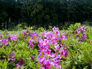 つつじは見頃で、参道の右斜面一杯に咲き誇っている。年輩の観光客は皆カメラやビデオを振り回している。